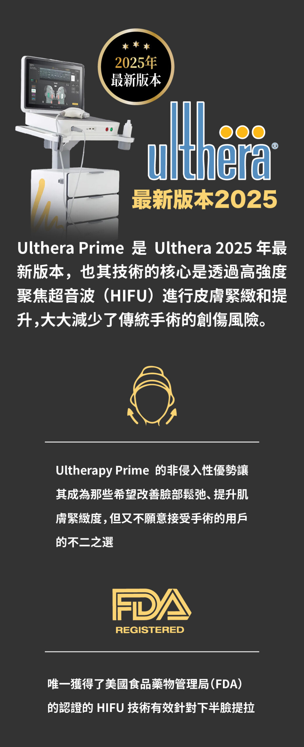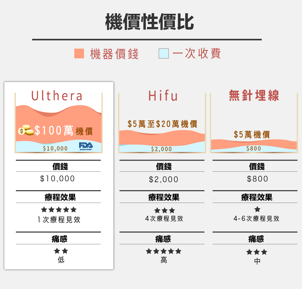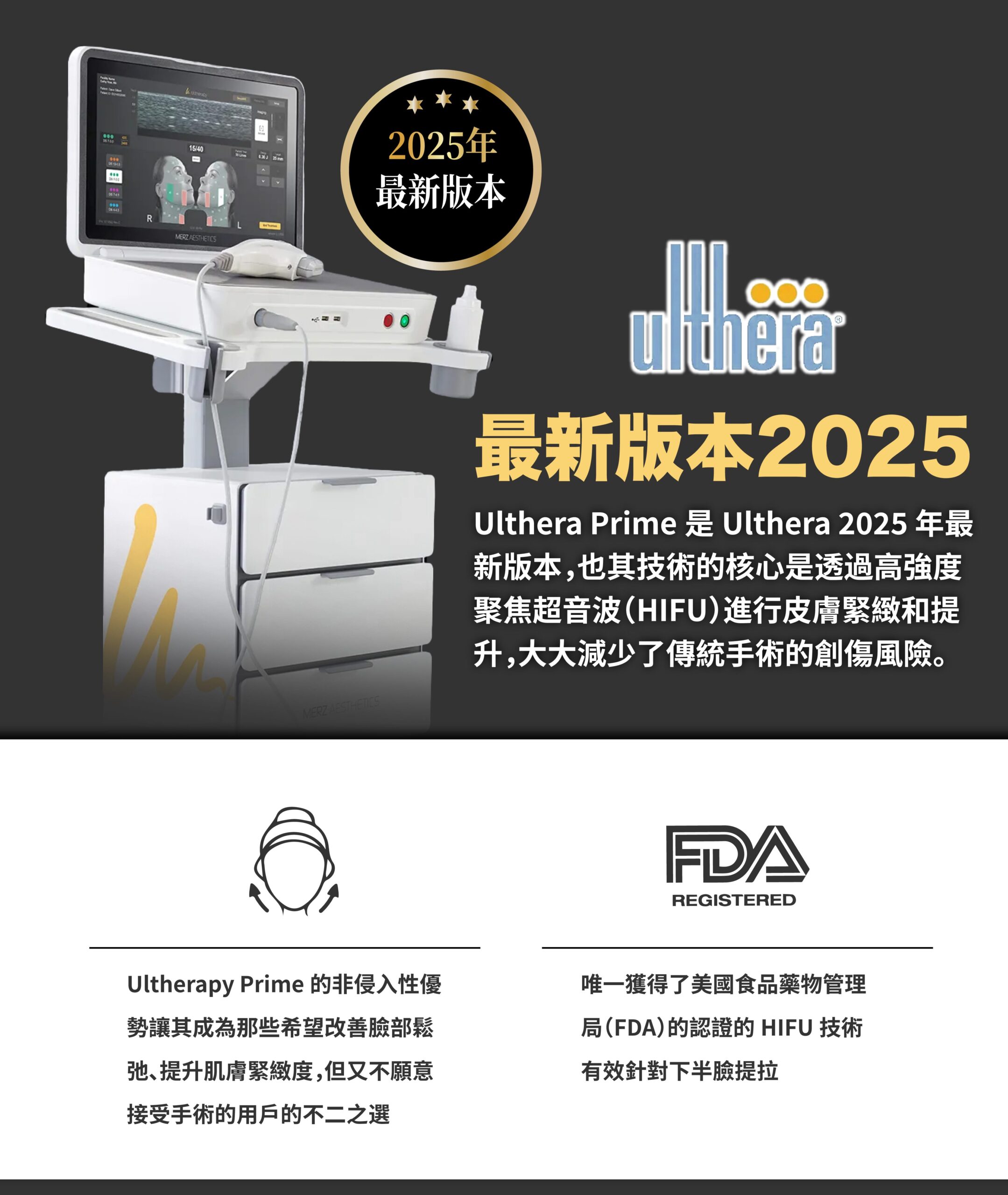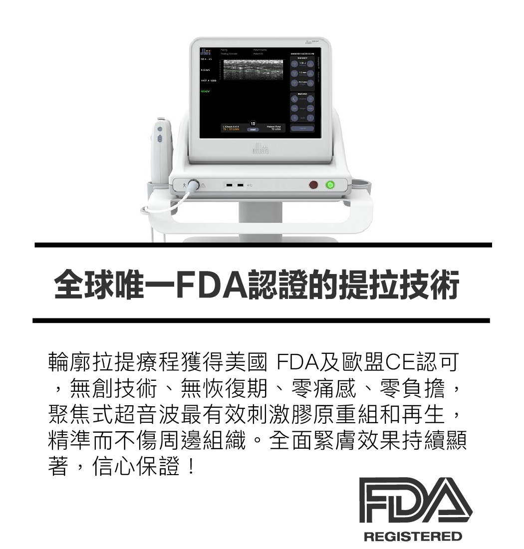 2.Ulthera是非侵入式臉部的「拉皮緊膚」治療儀器。