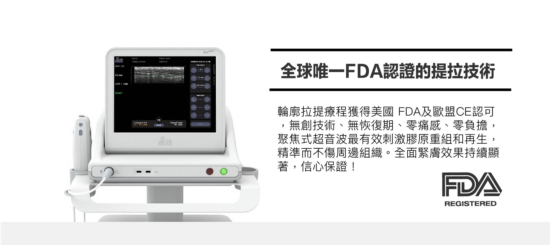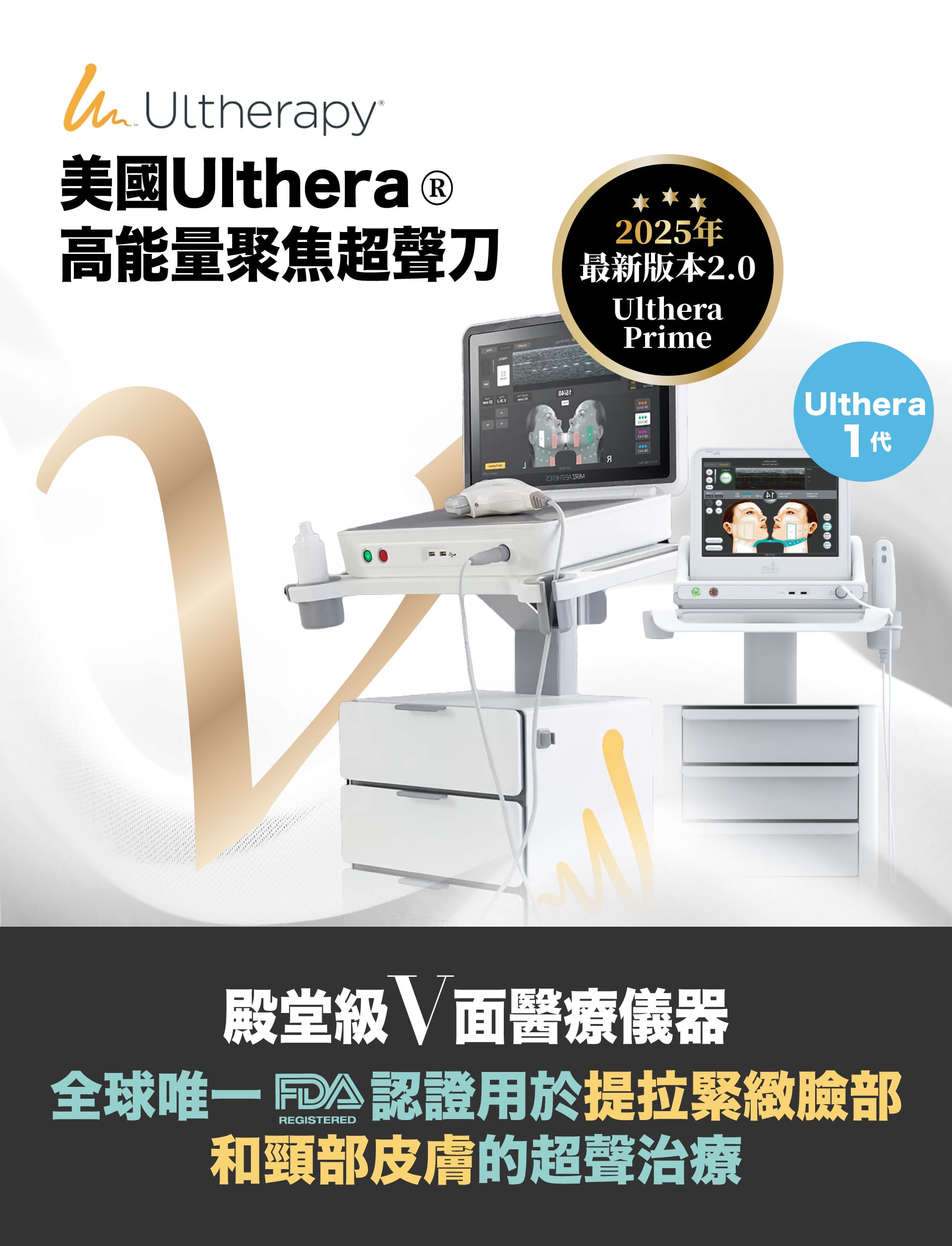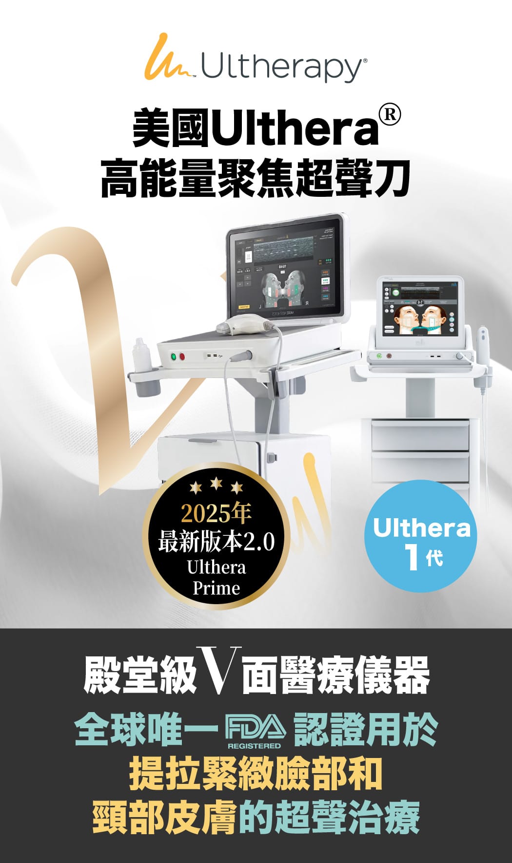 2.Ulthera是非侵入式臉部的「拉皮緊膚」治療儀器。
