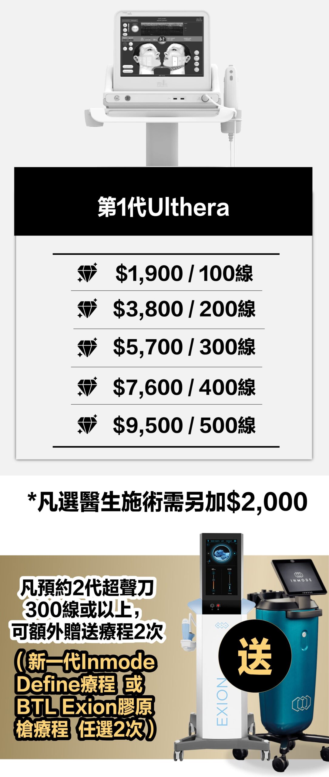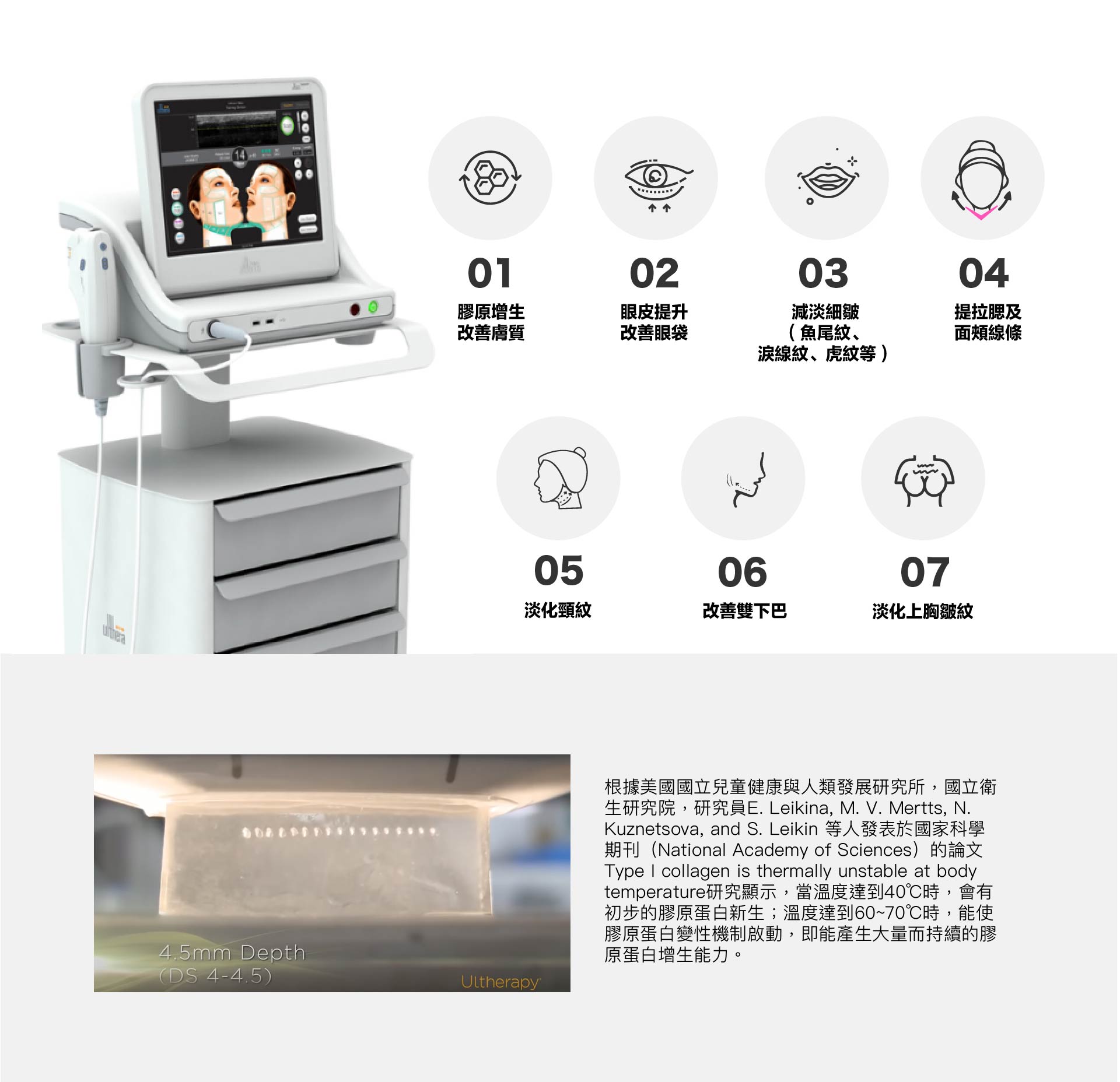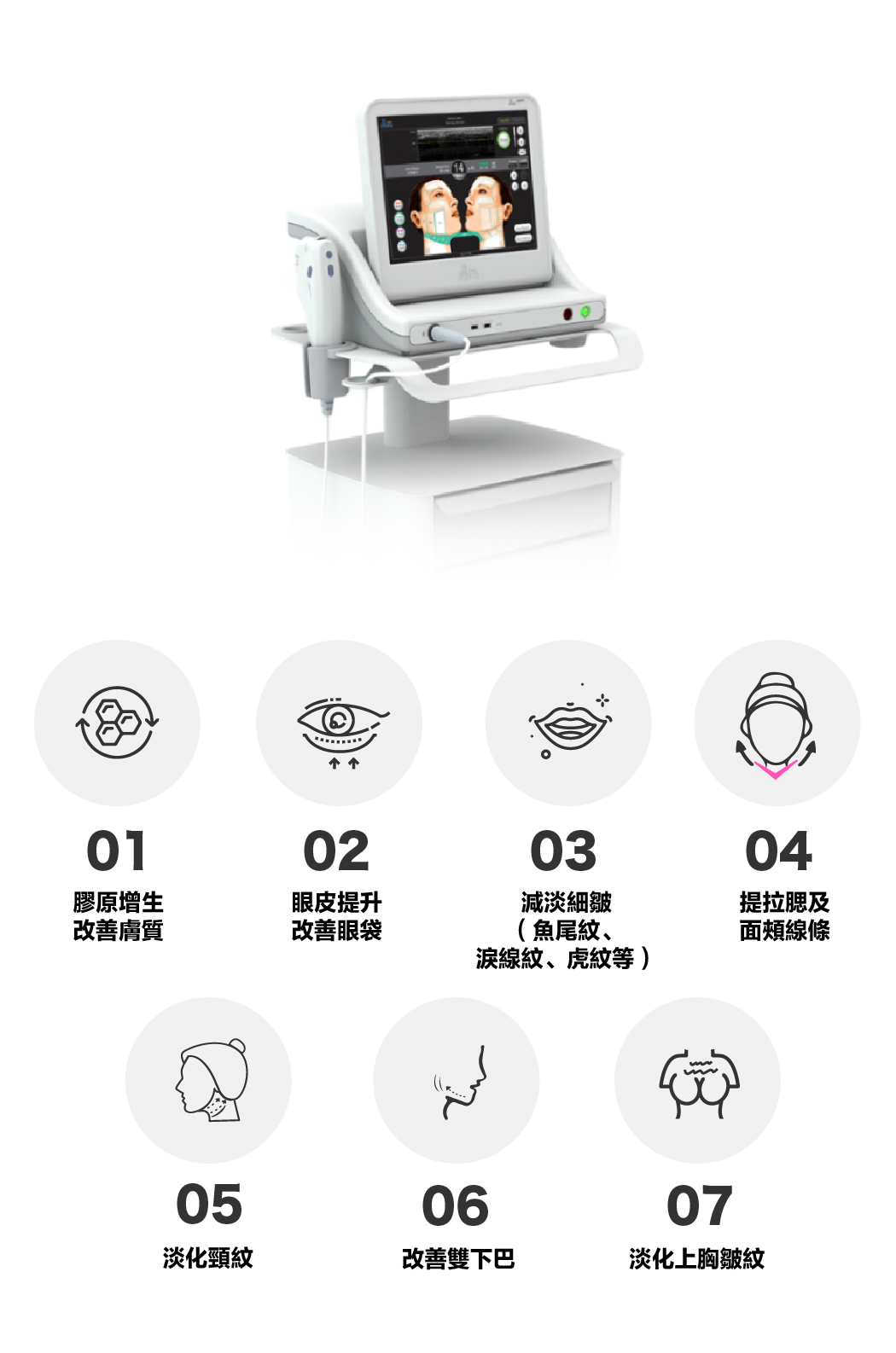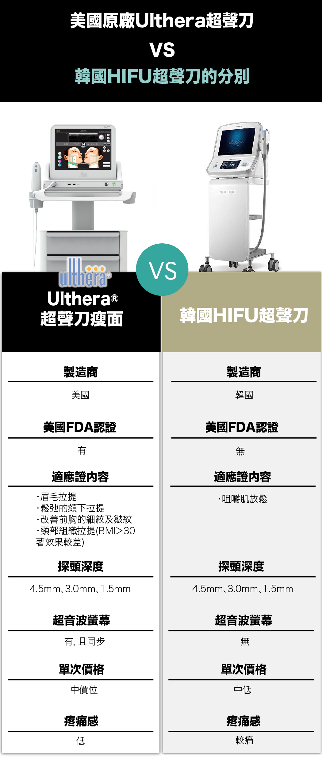 2.Ulthera是非侵入式臉部的「拉皮緊膚」治療儀器。
