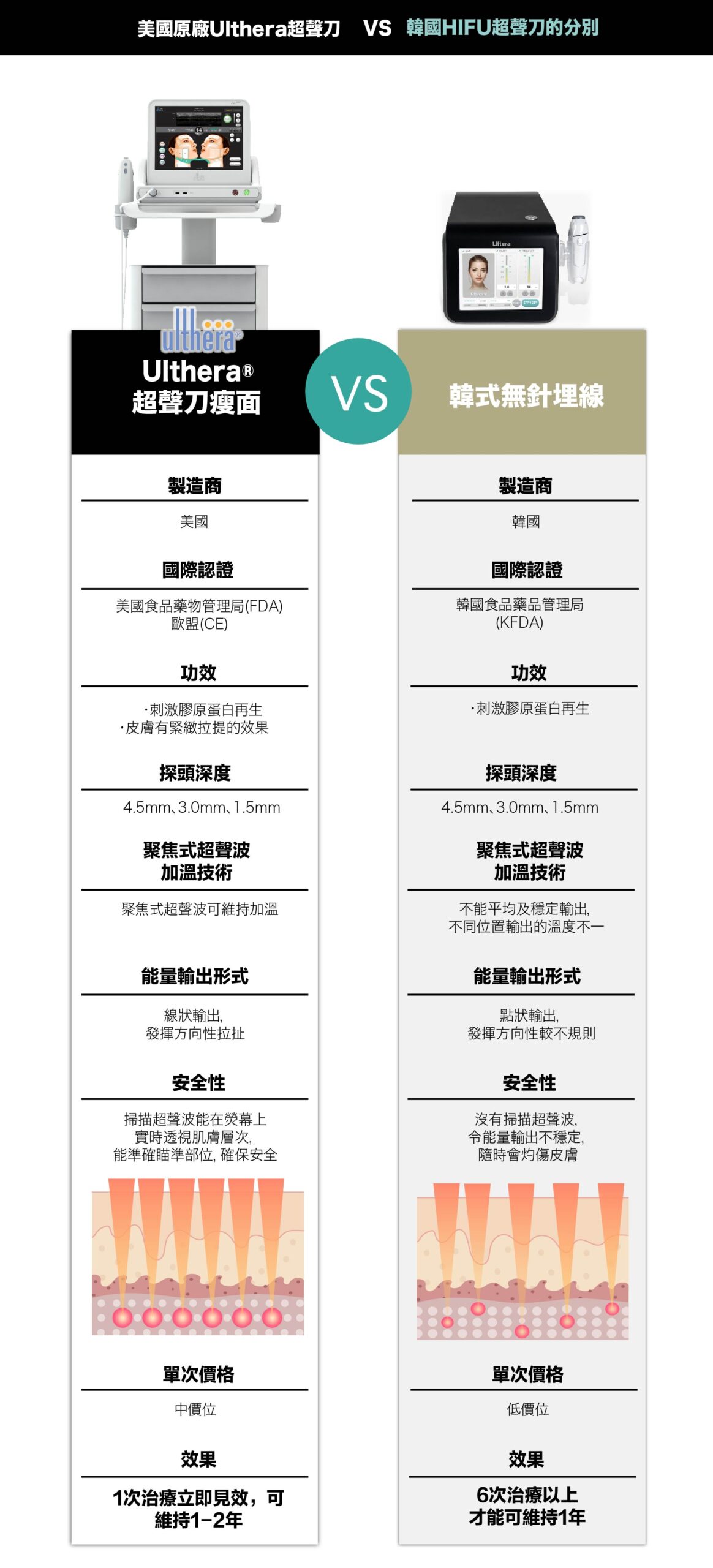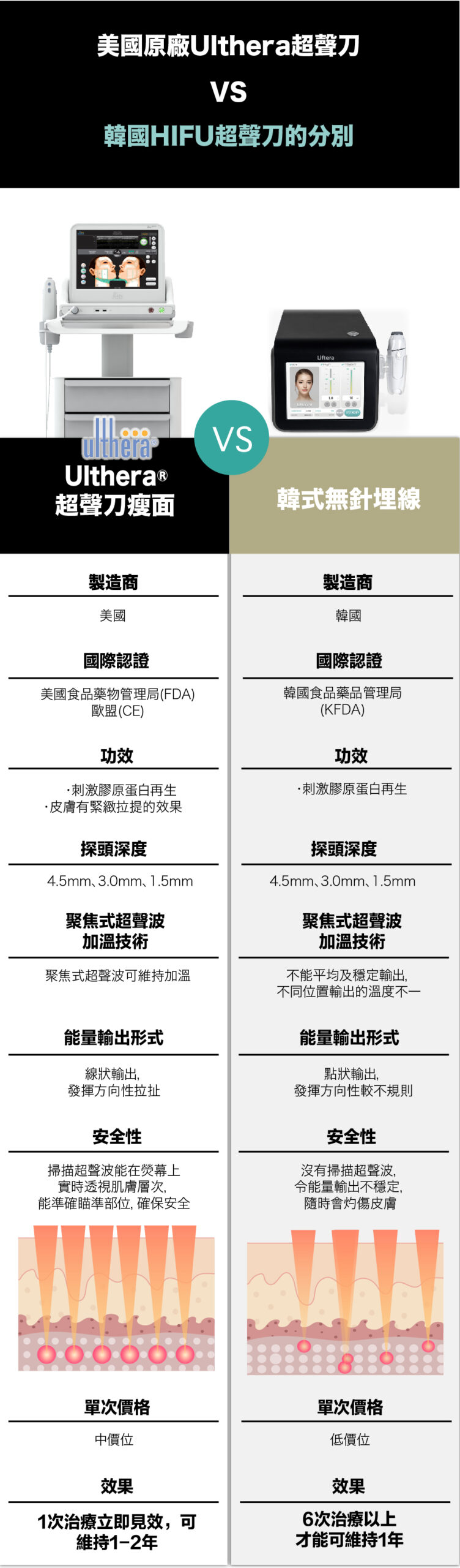 美國原廠Ulthera® 高能量聚焦超聲刀兩大特點