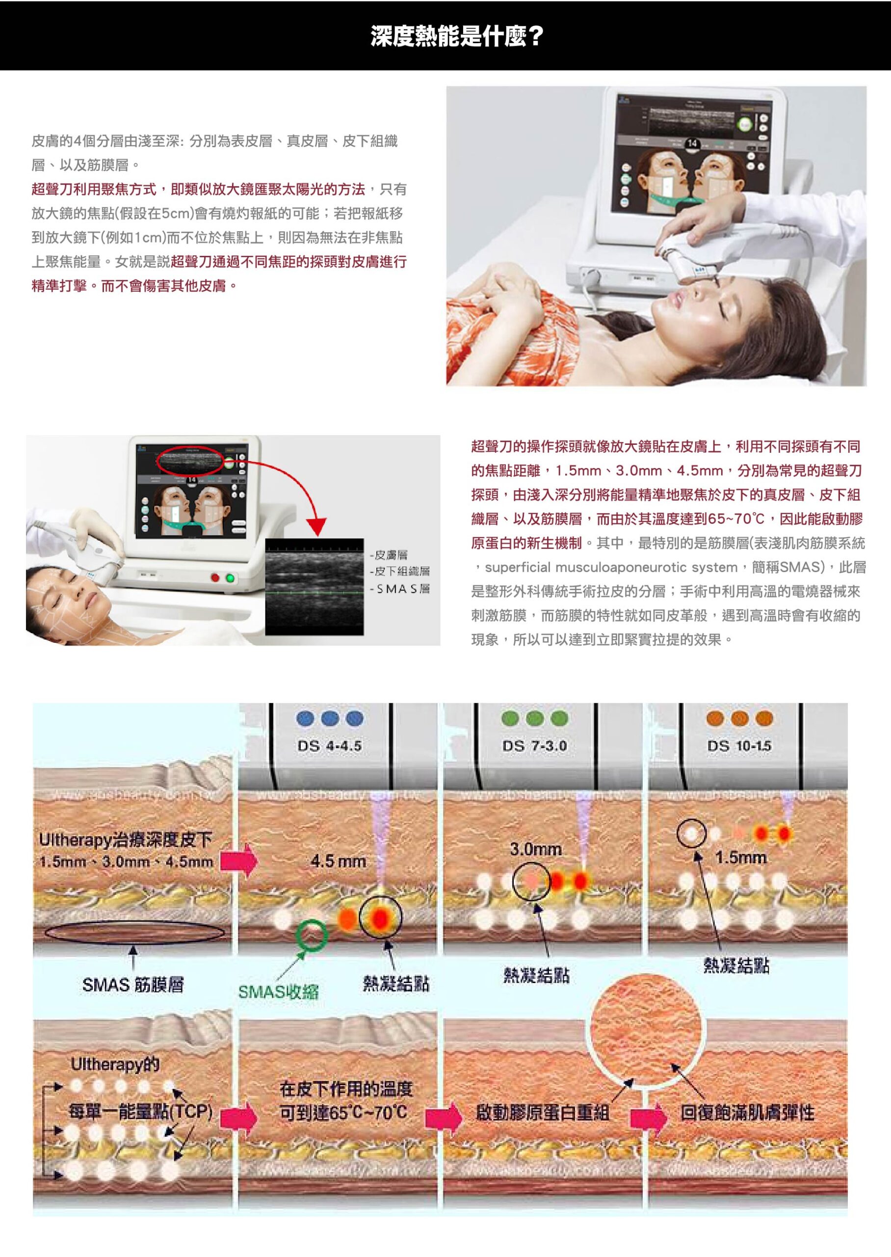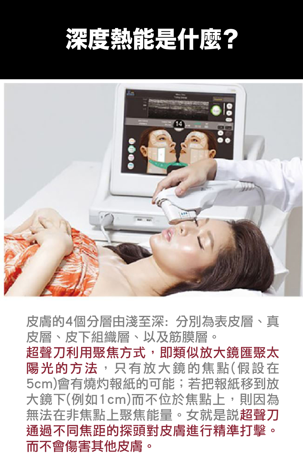5.目前不動刀拉皮治療 ~ 深度深‧溫度高‧緊緻拉提極佳能量。