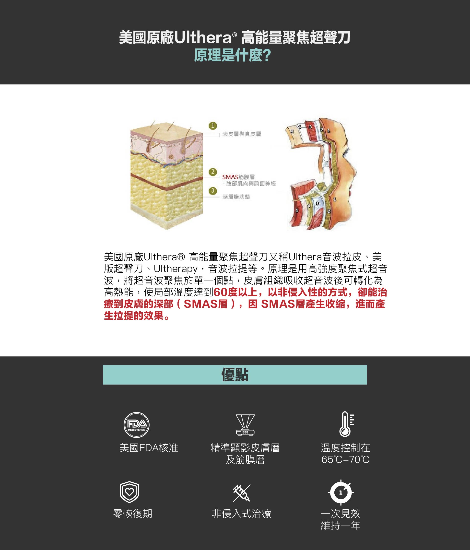 1.Ulthera好安心 — 沒有開放傷口 / 立即上班上課,完全沒有恢復期 / 不須重複多次治療!