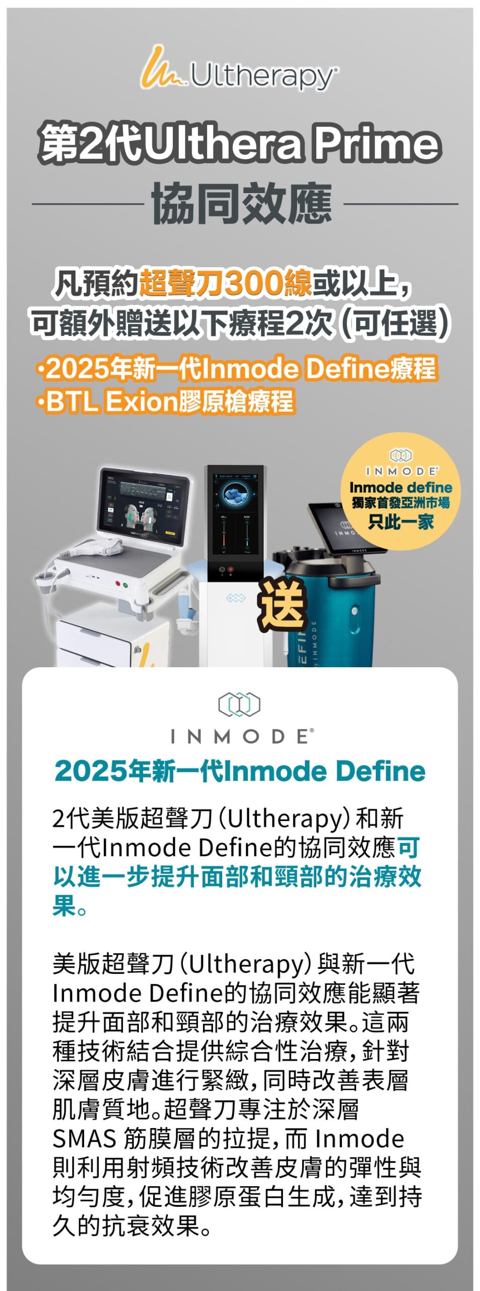 美版超聲刀(Ultherapy)與 Inmode 的協同效應: