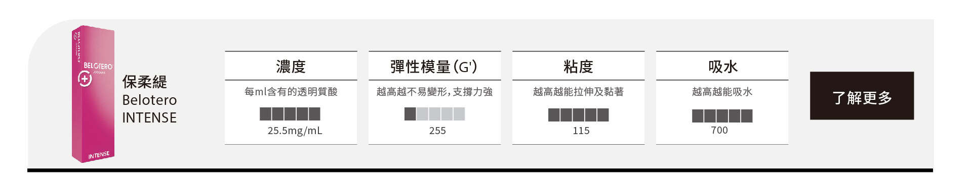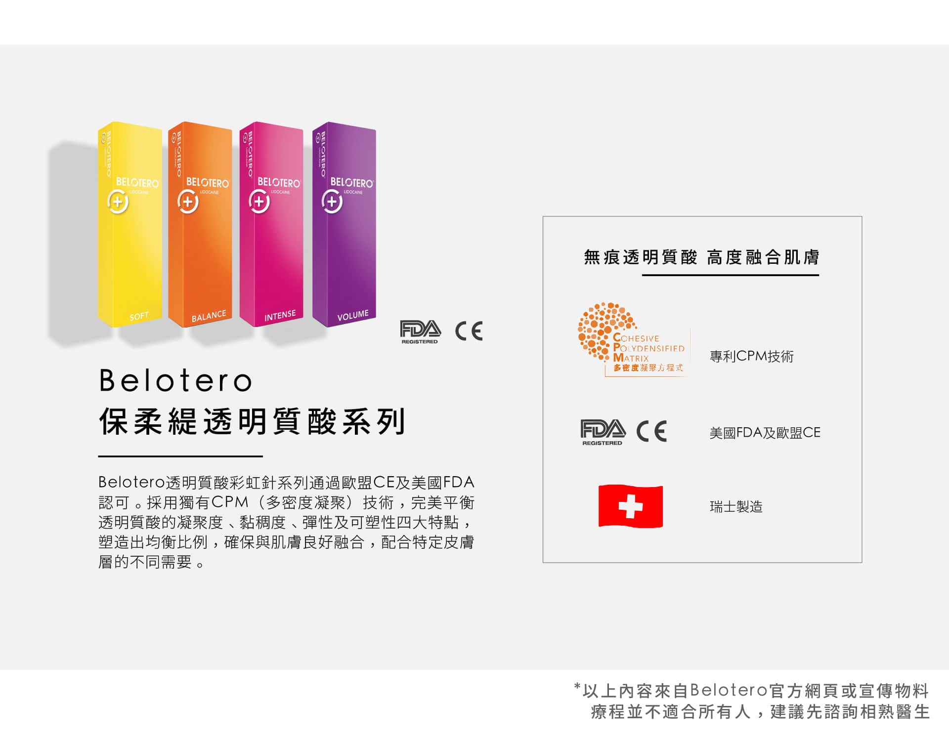 Belotero保柔緹透明質酸系列 (Belotero Soft、Belotero Intense、 Belotero Balance、 Belotero Volume) 1針