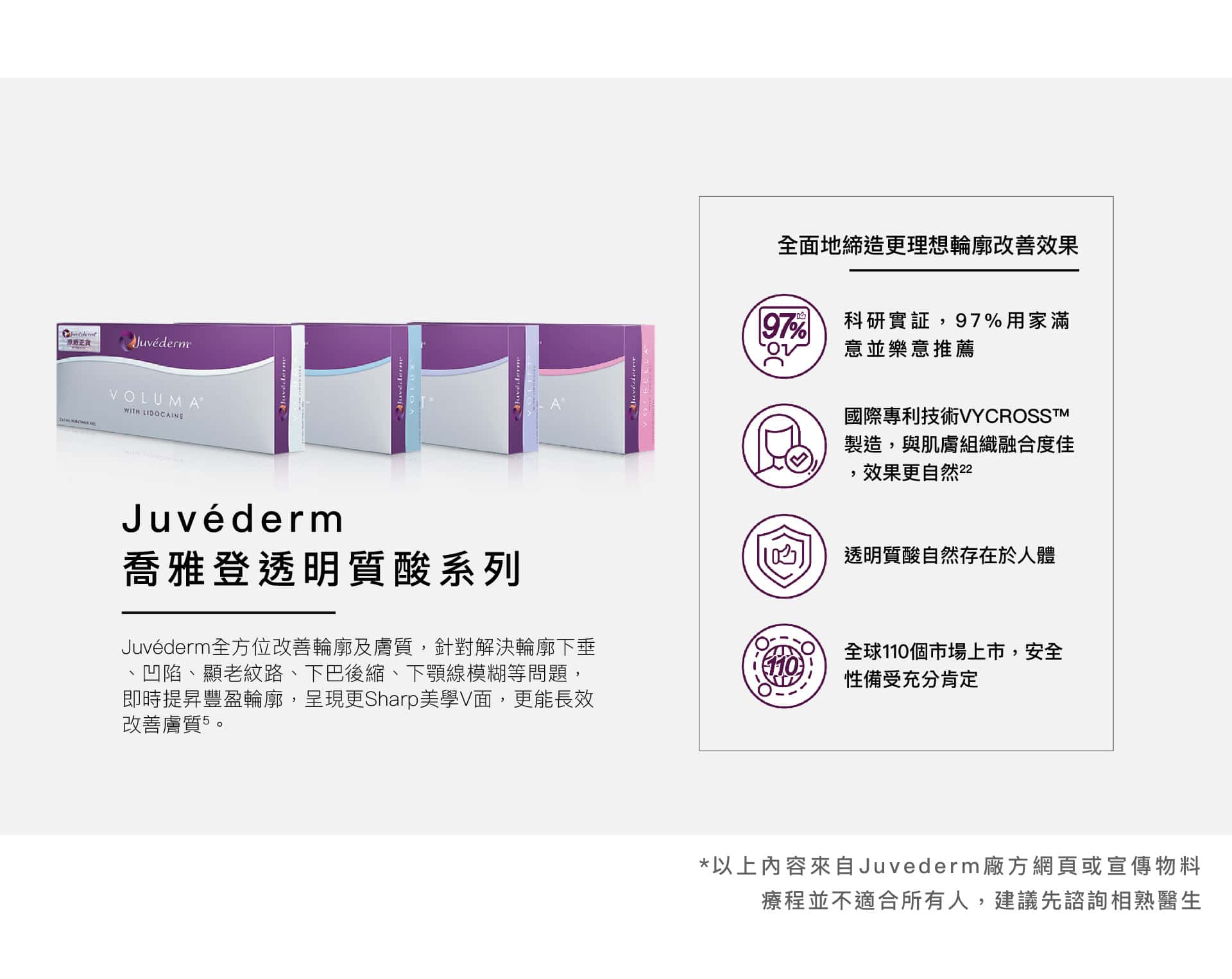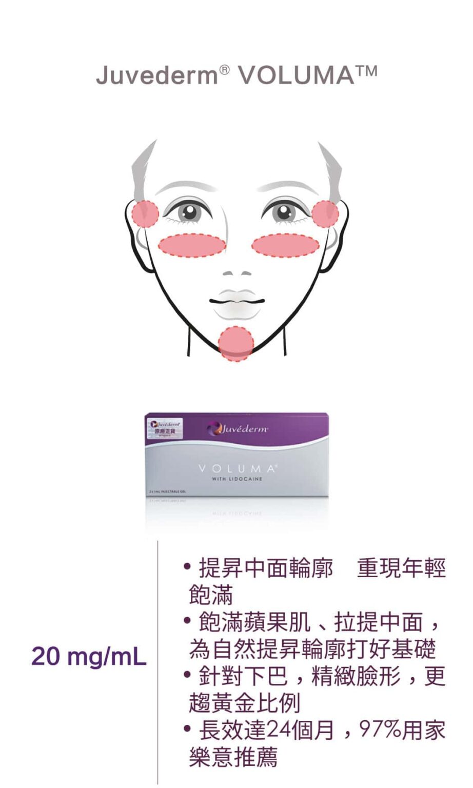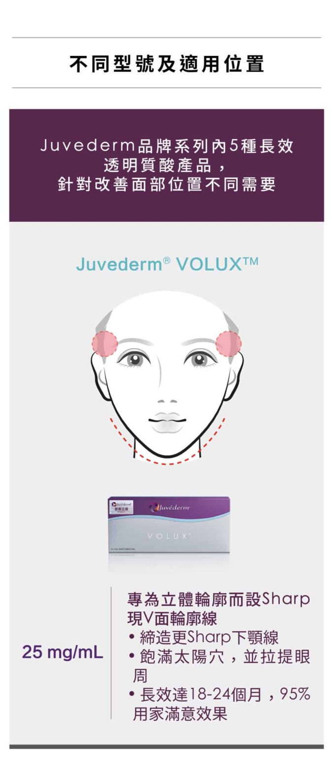1-Juvederm喬雅登透明質酸系列 (Juvederm VOLUX、Juvederm VOLUMA、 Juvederm VOLIFT、Juvederm VOLBELLA) 3針