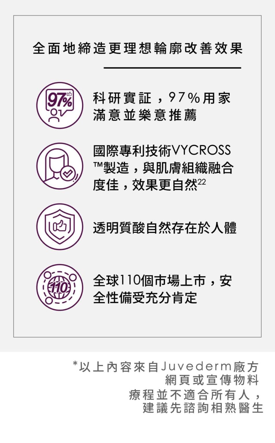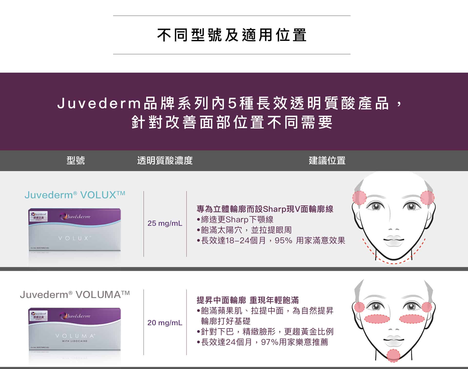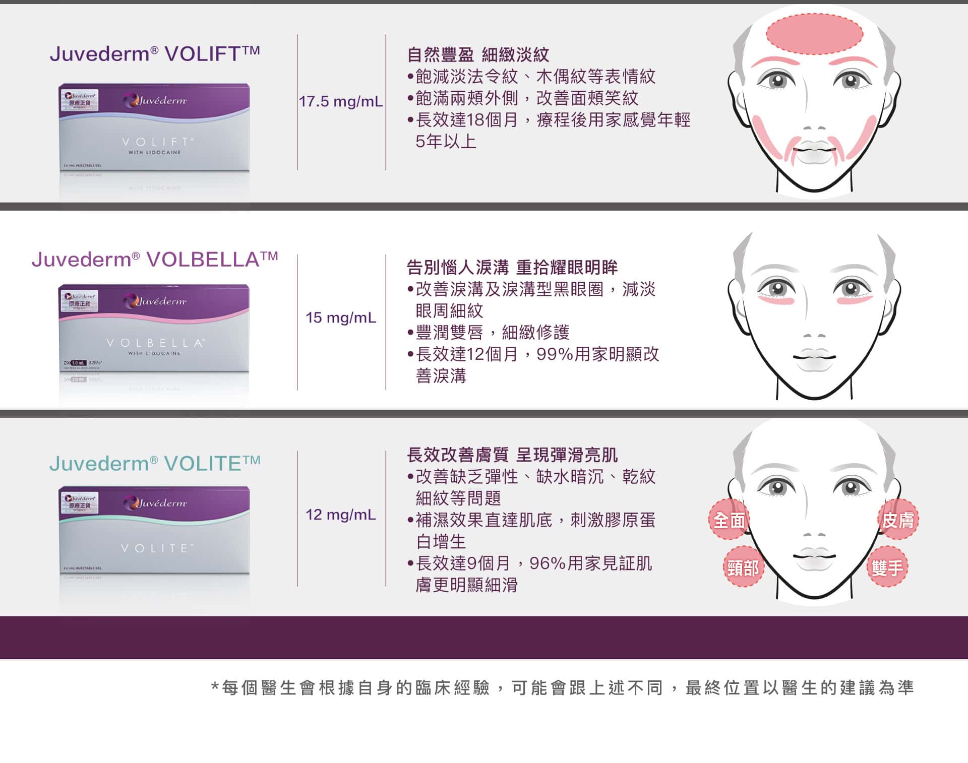 1-Juvederm喬雅登透明質酸系列 (Juvederm VOLUX、Juvederm VOLUMA、 Juvederm VOLIFT、Juvederm VOLBELLA) 3針