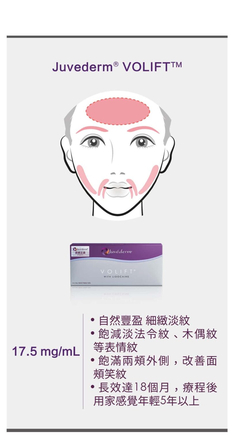 1-Juvederm喬雅登透明質酸系列 (Juvederm VOLUX、Juvederm VOLUMA、 Juvederm VOLIFT、Juvederm VOLBELLA) 2針