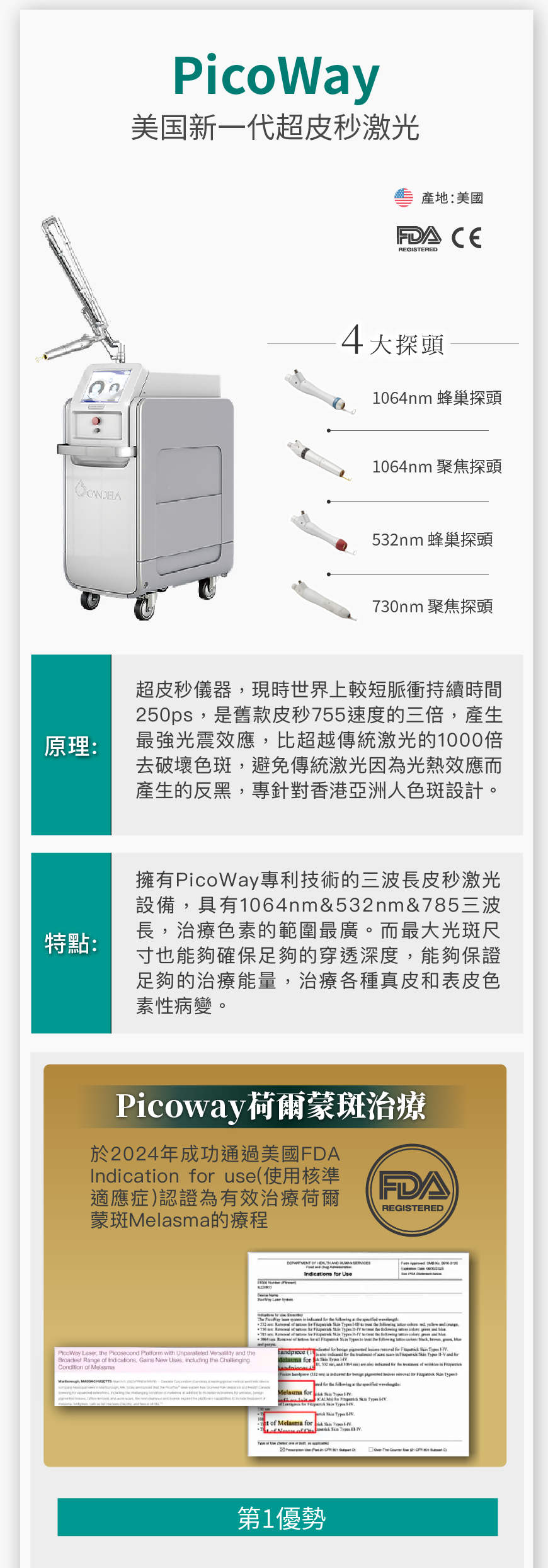 美國新一代超皮秒激光PICOWAY 1次 價錢$880