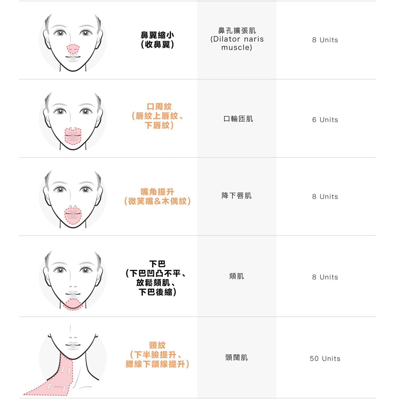 額額紋抬頭紋+眉間紋川字紋+魚尾紋+腮線下頜線提升 $5,770/1次 -