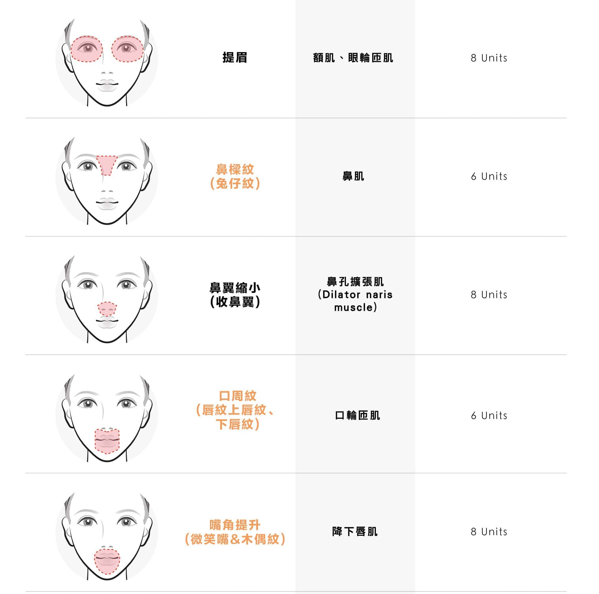額額紋抬頭紋+眉間紋川字紋+ 魚尾紋+腮線下頜線提升